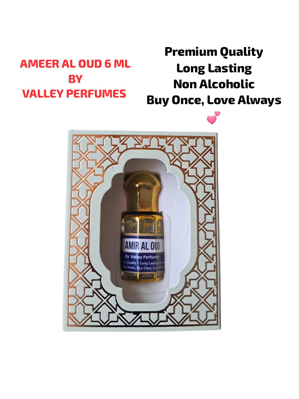 Ameer Al Oud is a luxury 6 ml premium attar crafted by Valley Perfumes, featuring a rich and sophisticated oud-centric fragrance. This non-alcoholic perfume combines deep agarwood (oud) with warm amber and subtle spicy-woody notes for a long-lasting, elegant scent. Perfect for daily wear, special occasions, or gifting, it comes in a compact bottle ideal for travel and effortless application.